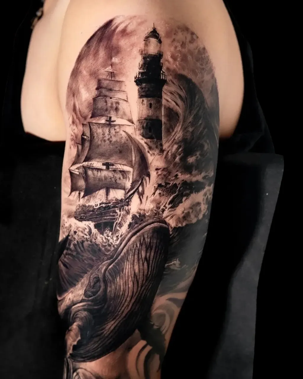 Whether working with realism, illustrative elements, or dynamic colour blends, his tattoos showcase control, creativity, and a dedication to high-quality craft making him a standout presence.