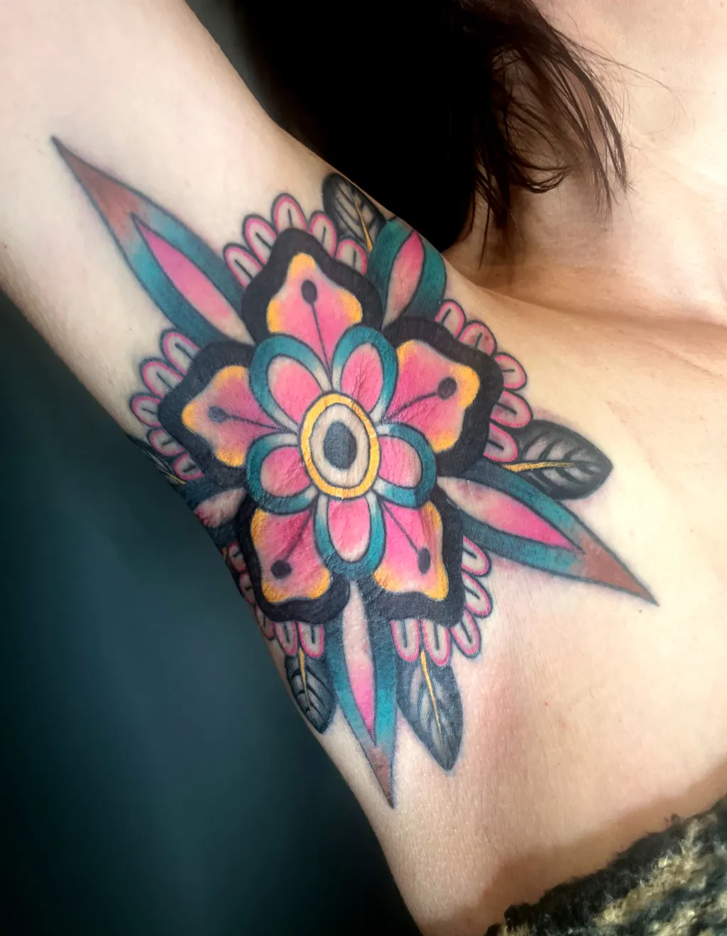 With a strong background in graphic design, she blends patterns, bold lines, and structured composition with floral and nature-inspired forms, creating tattoos that feel balanced, expressive, and visually striking. Every piece reflects a harmony between her love for the natural world and her graphic precision.