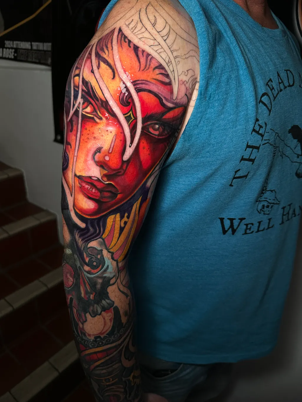 Originally from Ukraine, Anna Rose is known for her bold, painterly tattoos that merge classic art traditions with modern emotional expression. Her pieces are deeply personal, each one crafted to tell a story of individuality, connection, and creativity.
