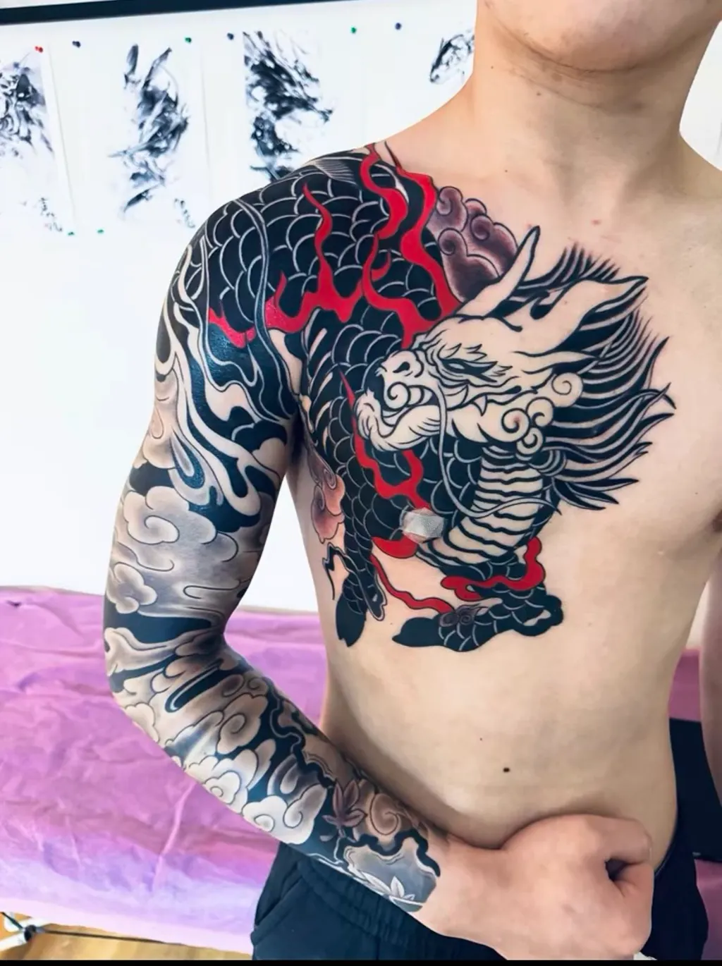 His large-scale tattoos carry both power and grace, honouring tradition while pushing artistic boundaries.
