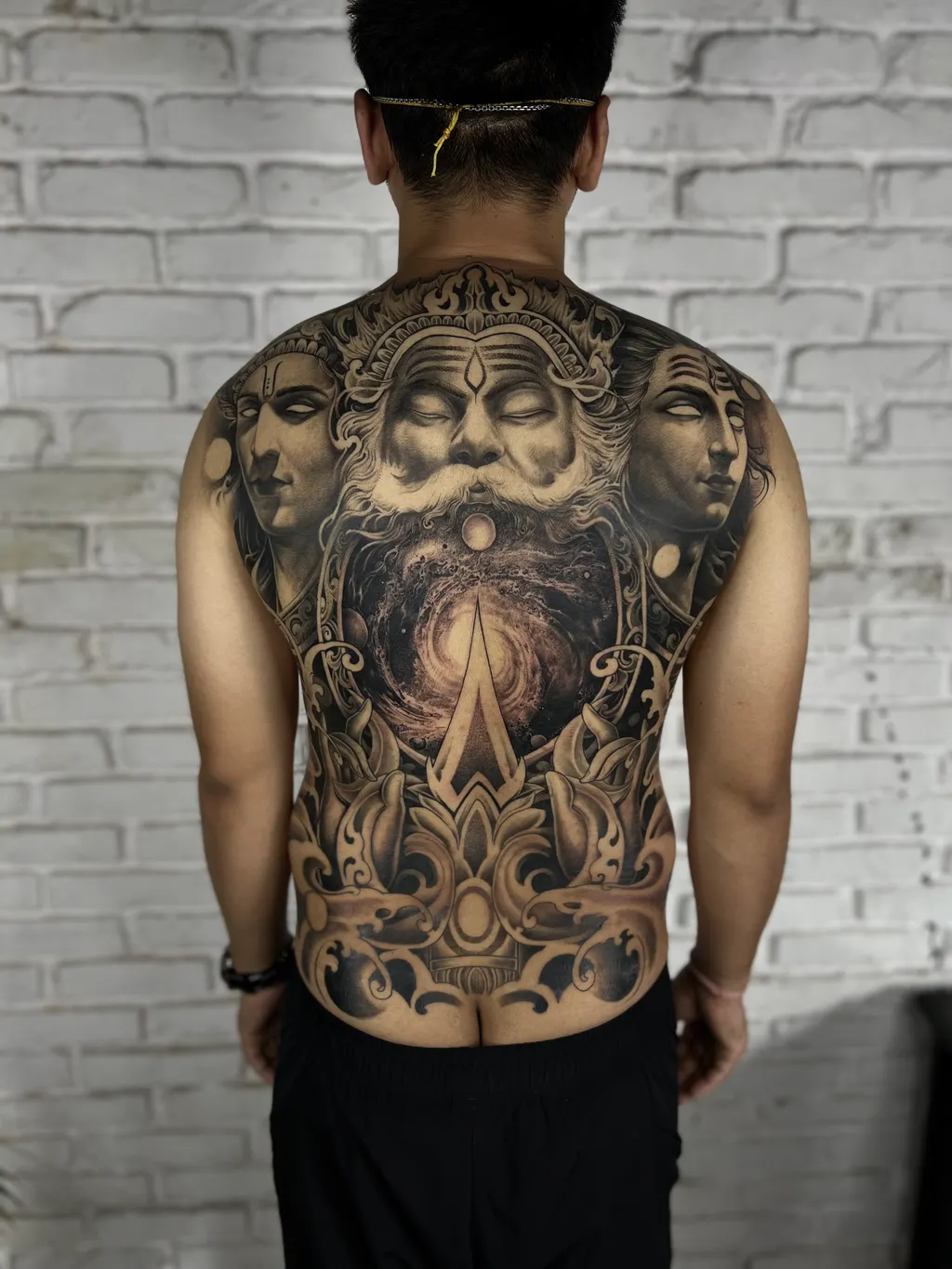 Hailing from the mountain foothills of Nepal, Bimal channels a unique blend of modern Oriental and ornamental tattooing, creating work rooted in mythology, spirituality, and sacred storytelling. With over 12 years of experience, he is widely admired by both artists and clients for his versatility, his deep perspective on the craft, and his mastery of flow shaping tattoos that move effortlessly with the body. His pieces range from gods to mythical legends, each approached with intention, reverence, and a profound sense of cultural artistry.