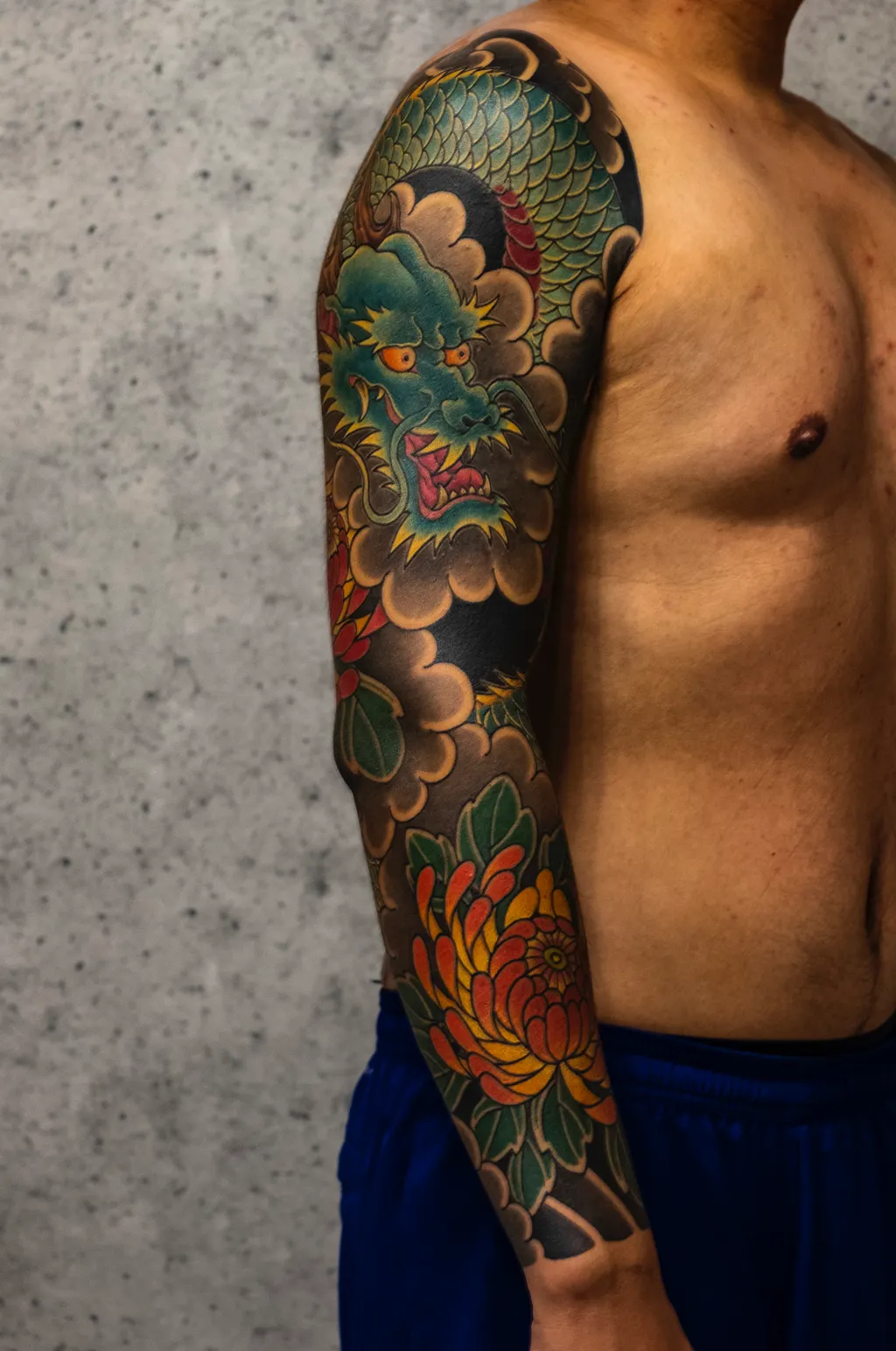 Specialising in pure Japanese and Chinese tattoo styles, Danny’s work pays tribute to the depth of tradition and the beauty of cultural storytelling through ink. His compositions are bold yet balanced. Rich with symbolism, flow, and detail.