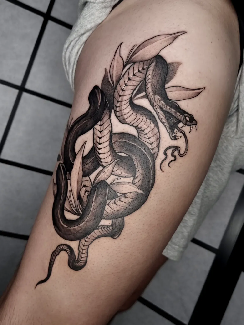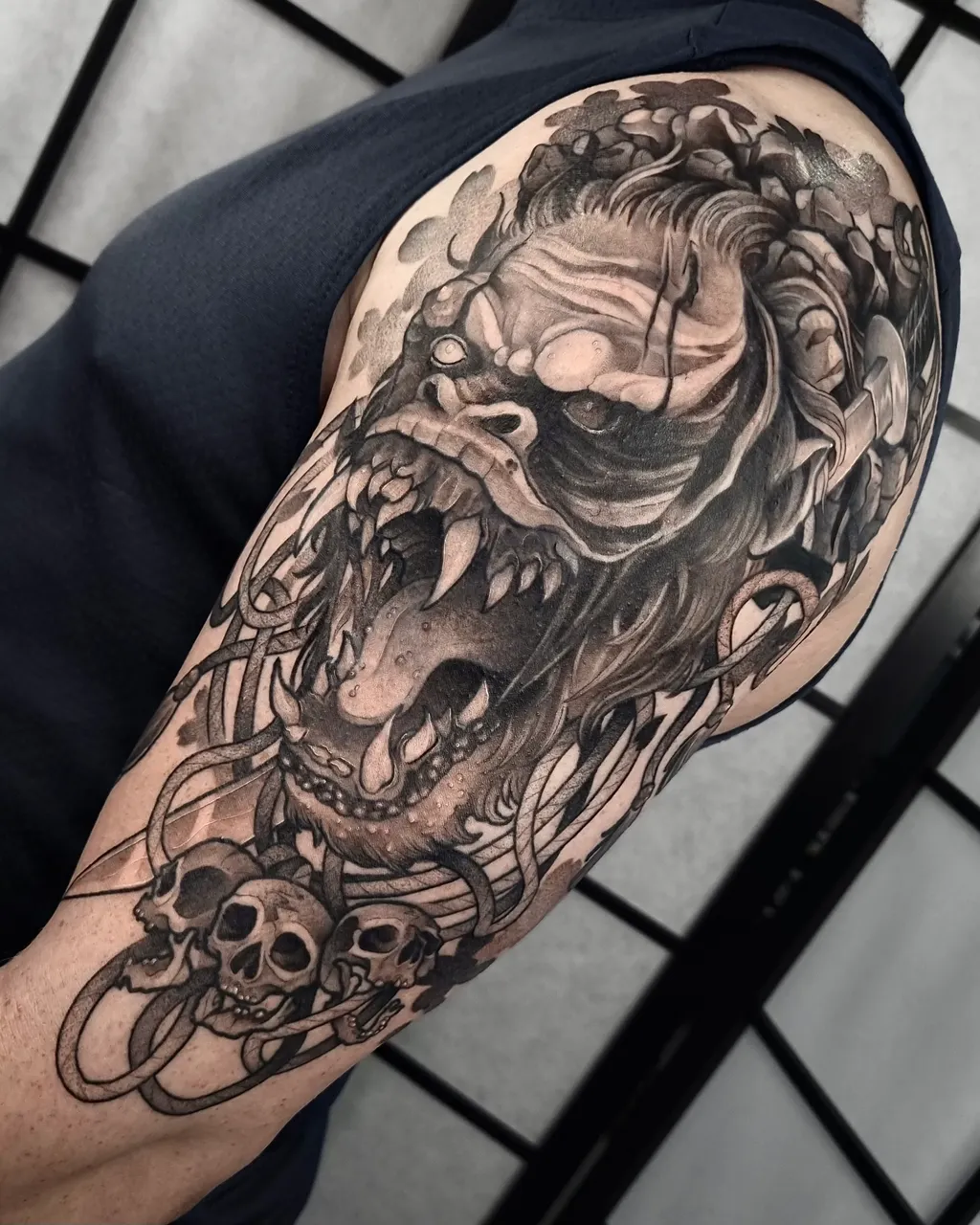 Tattooing since 2017, Daria has spent over eight years refining her craft blending creepy, ornate motifs with soft, feminine florals to create work that feels both haunting and harmonious.