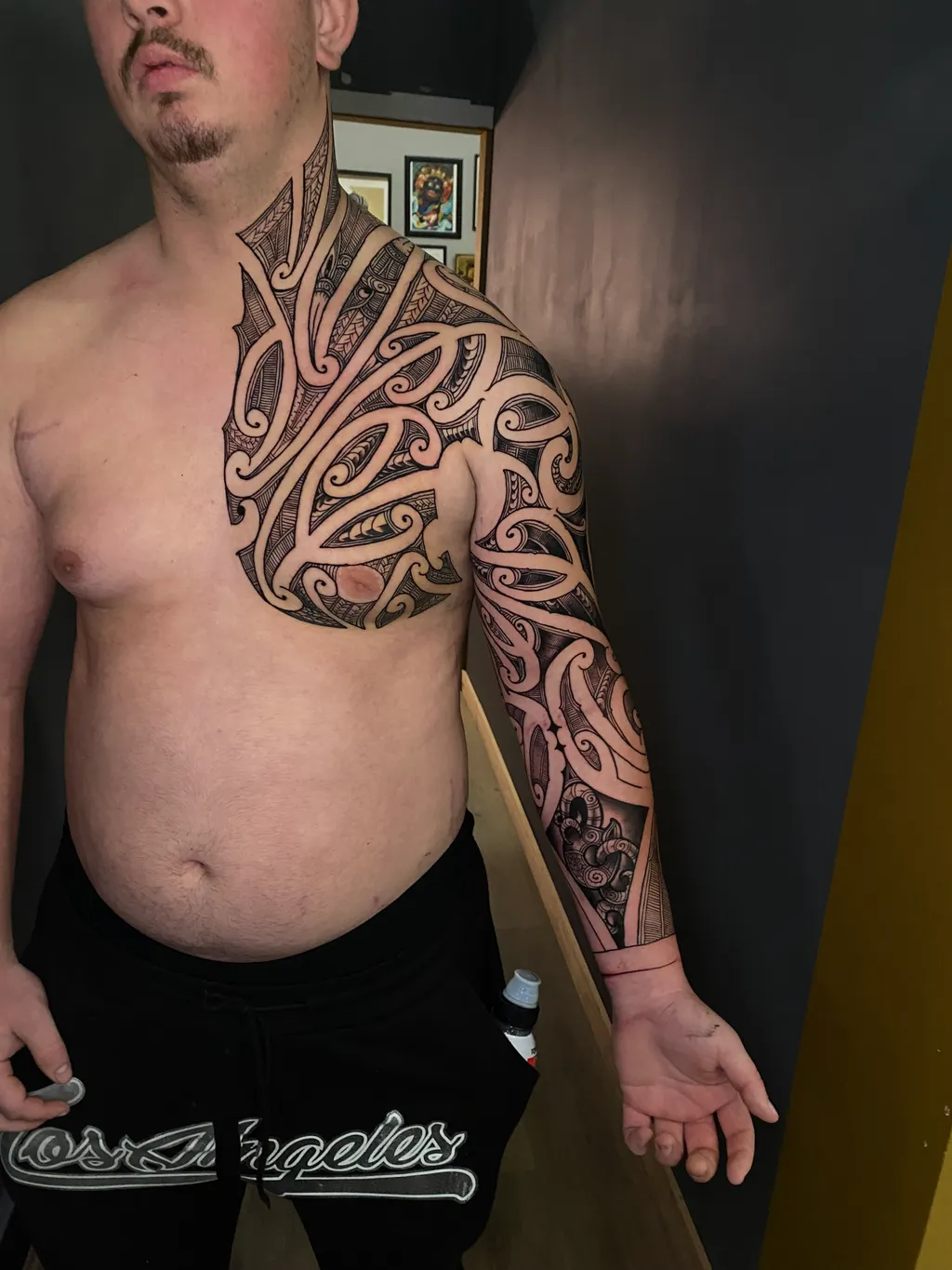 Deej specialises in Tā Moko, the traditional Māori art form of storytelling through skin. Since starting his tattoo journey in 2022, he’s been on a mission to honour his heritage, share his culture, and continue learning the craft that connects people through history, mana, and meaning.