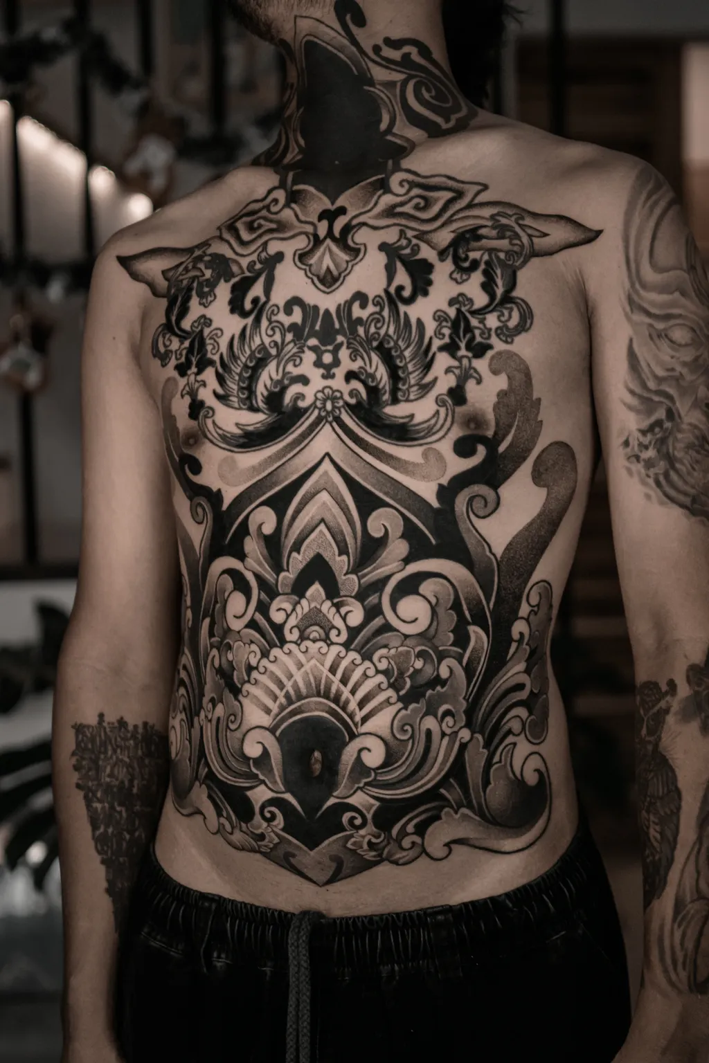 With over 13 years in the tattoo industry, Gracka has honed a distinctive style rooted in ornamental tattooing blending flow, structure, and detail to create pieces that move naturally with the body. His tattoos are timeless, balanced, and crafted with an eye for precision and harmony.