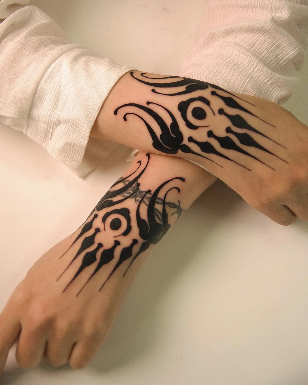 Working in blackwork and black & grey, Gun creates tattoos that celebrate the harmony between fluid curves and intentional empty space. His work is defined by balanced contrast, clean structure, and the subtle tension between darkness and silence.