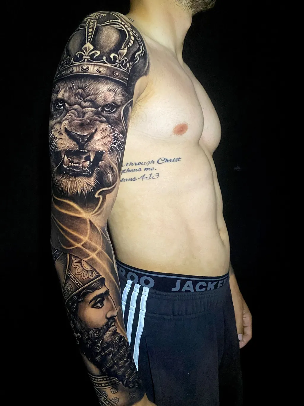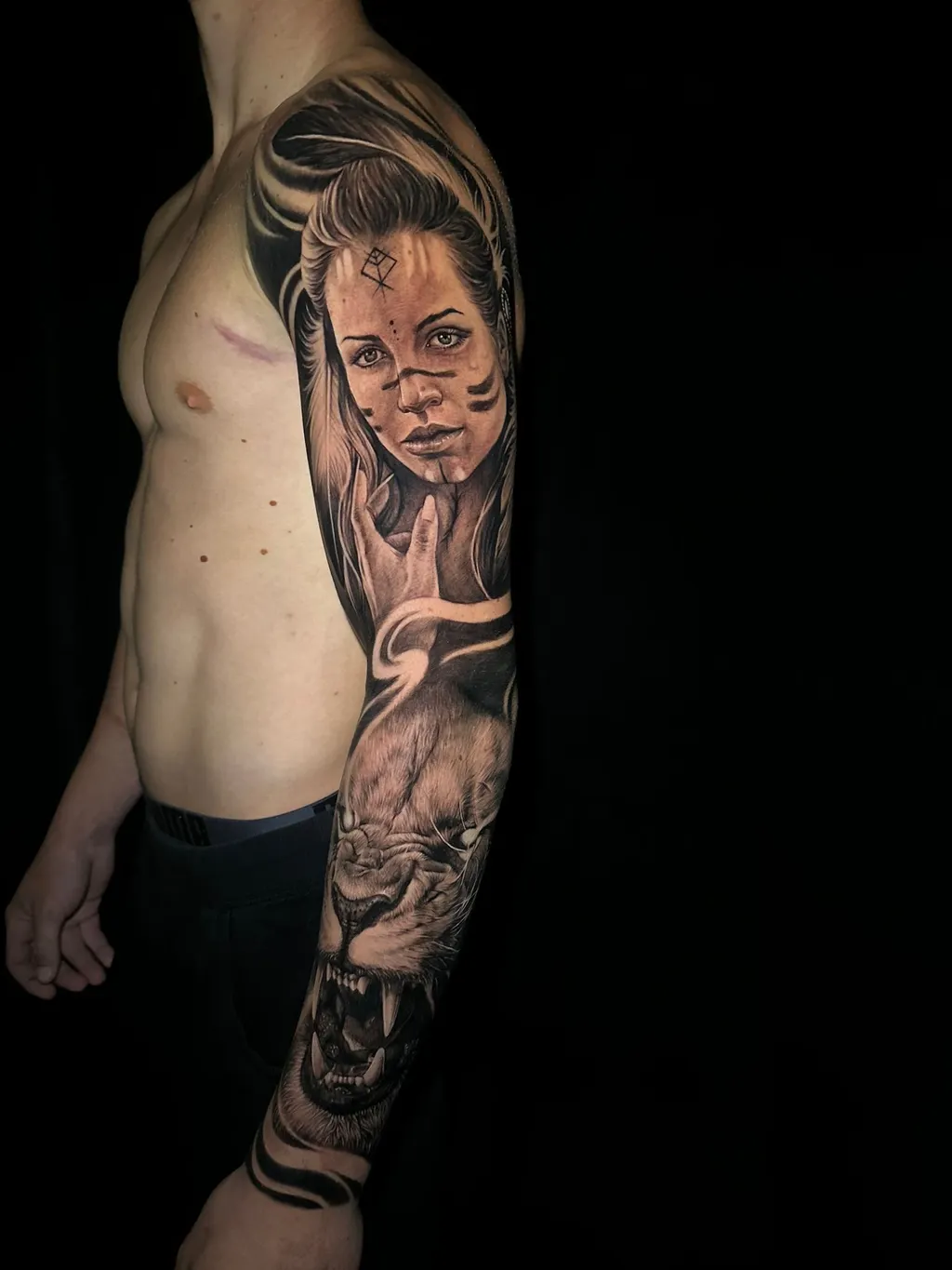 Specialising in realism and black & grey, Jawa’s work is defined by smooth shading, bold structure, and lifelike detail. His tattoos carry a strong sense of mood blending dramatic lighting, fine textures, and carefully balanced composition to create pieces that feel both striking and atmospheric.