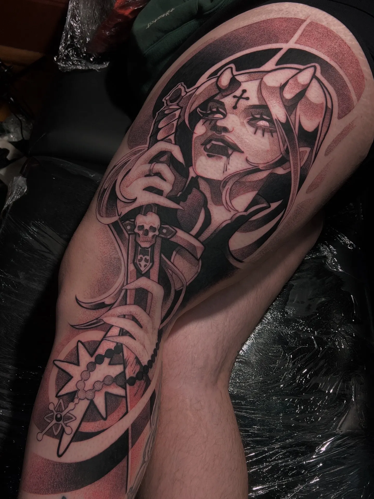 With five years behind the machine, Jett (Ethan) has carved his niche in black & grey, neo-traditional, and illustrative tattooing blending fine linework with strong composition and storytelling. Each piece feels alive with texture, contrast, and movement, reflecting his eye for design and dedication to his craft.
