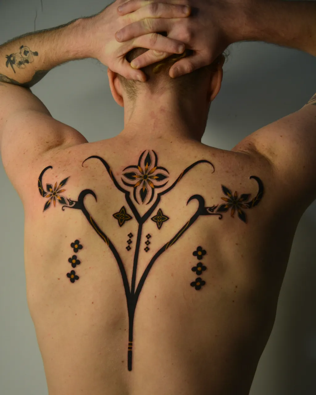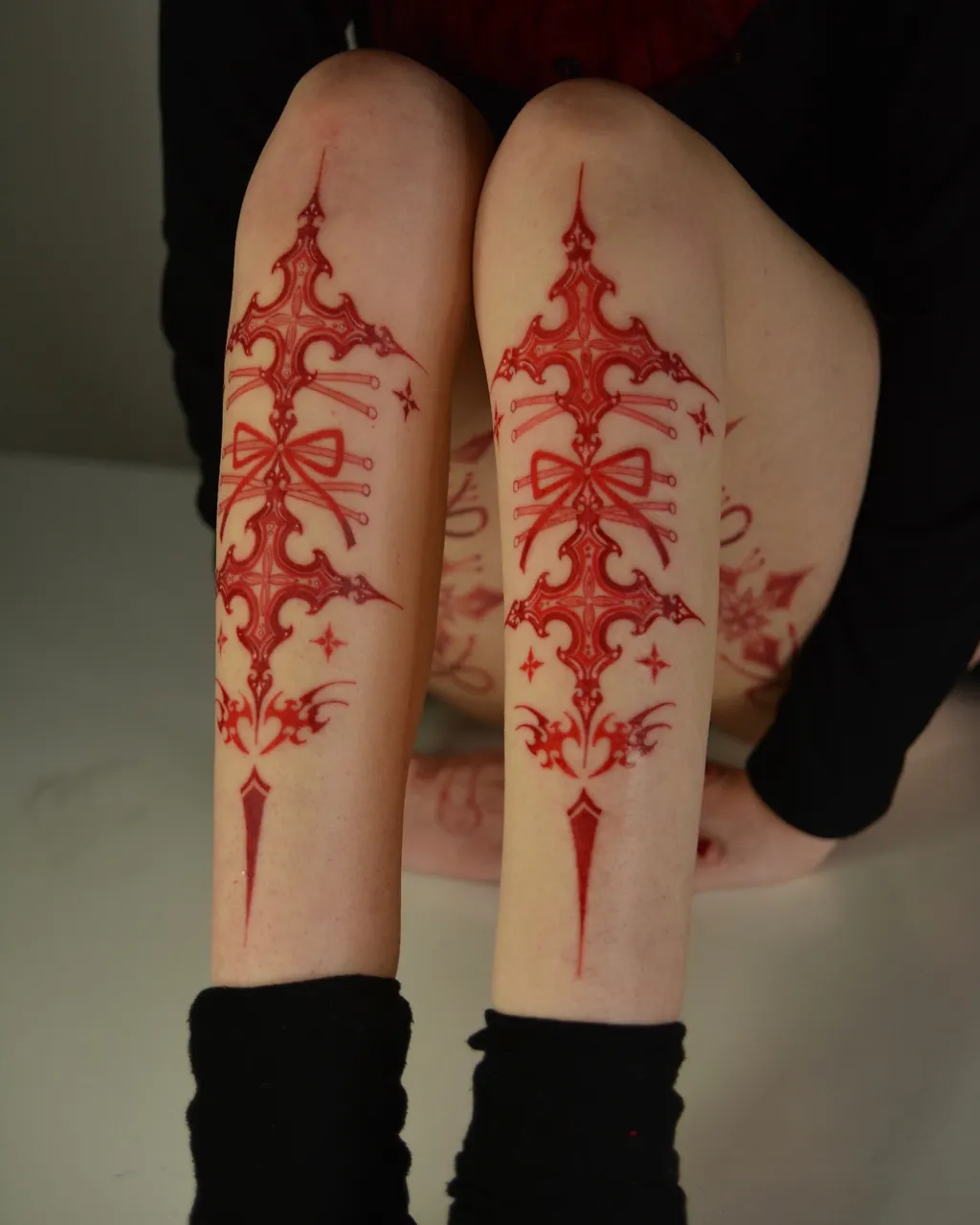 Focused on red ornamentals and colour tribal, Joobebe creates designs that move naturally with the body’s curves. Her work blends a glittery, kitsch-inspired energy with sophisticated ornamental detail, resulting in tattoos that feel both bold and beautifully refined.