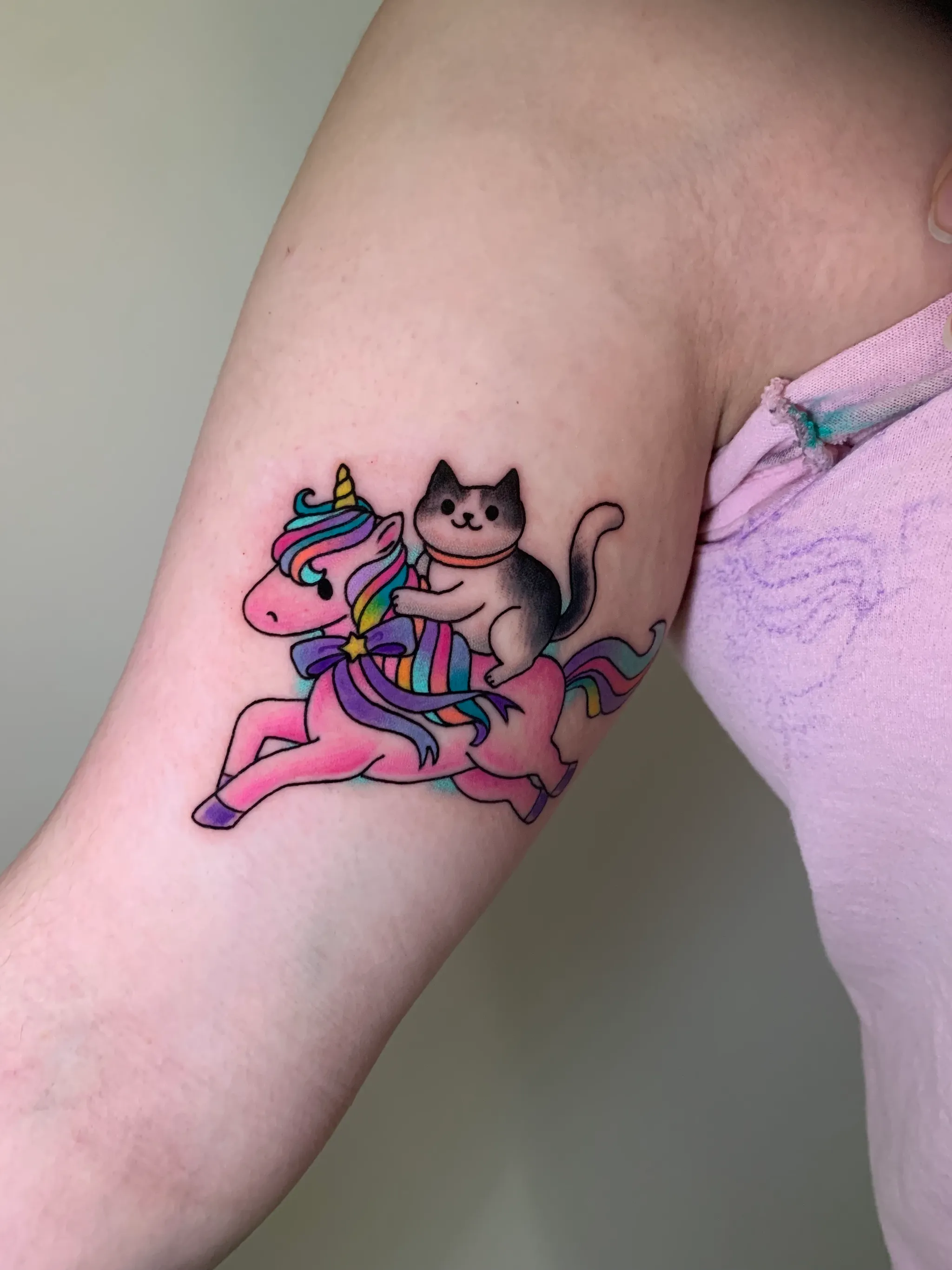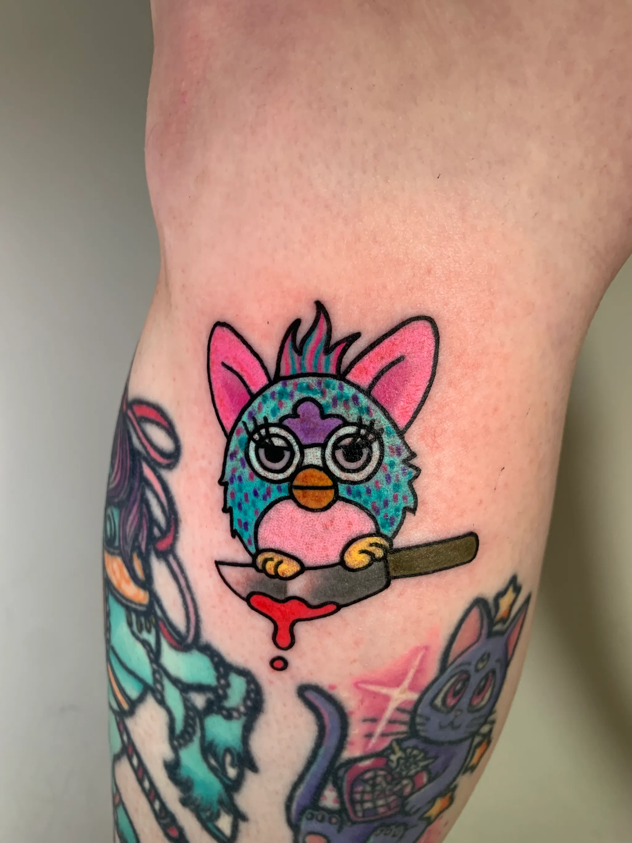 Known for her playful and colourful tattoo style, Karina brings joy to every piece she creates. Drawing inspiration from animals, nature, and anime, her work combines bright tones, clean lines, and charming characters from adorable cats and wombats to whimsical fantasy creatures.