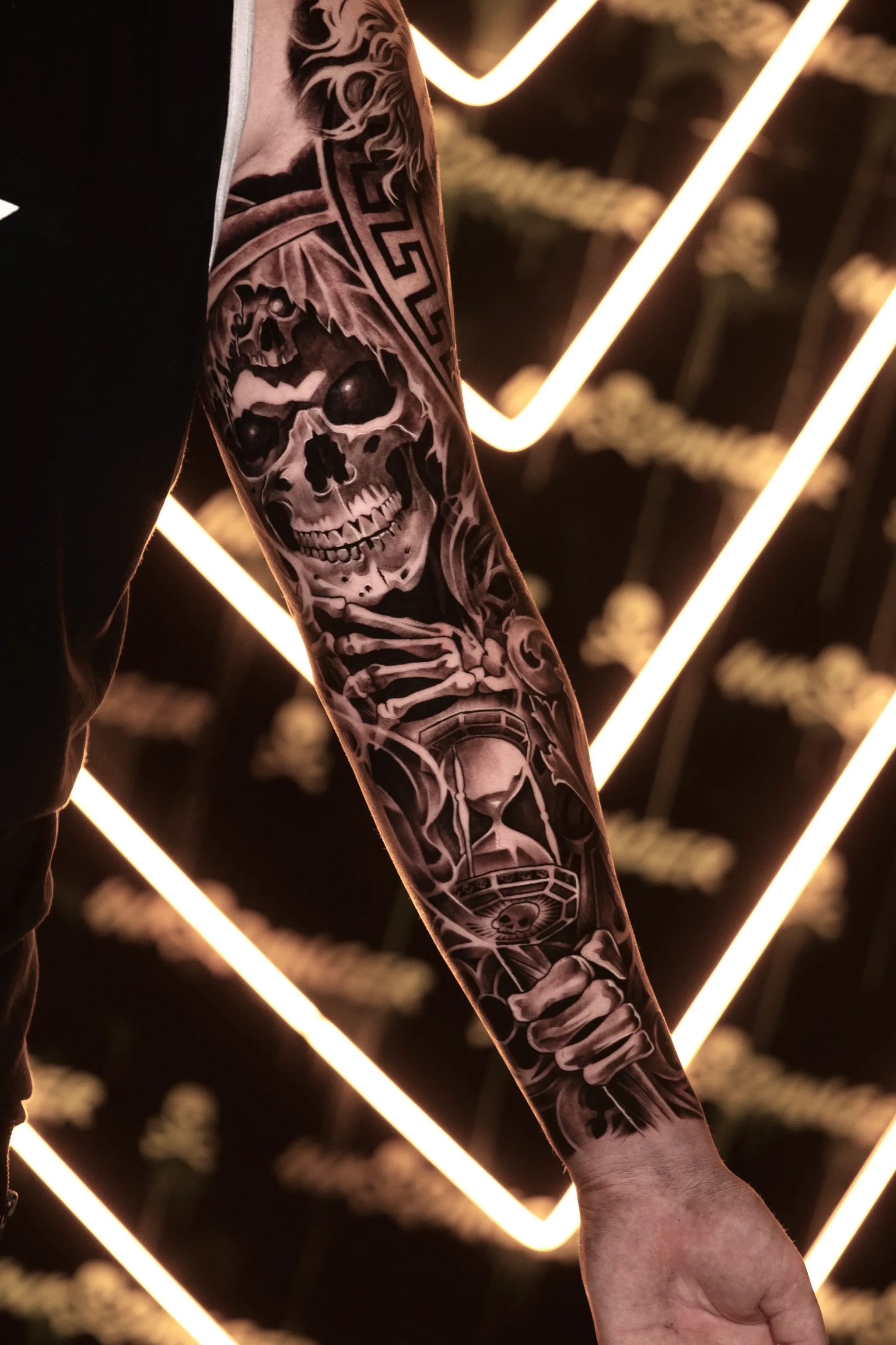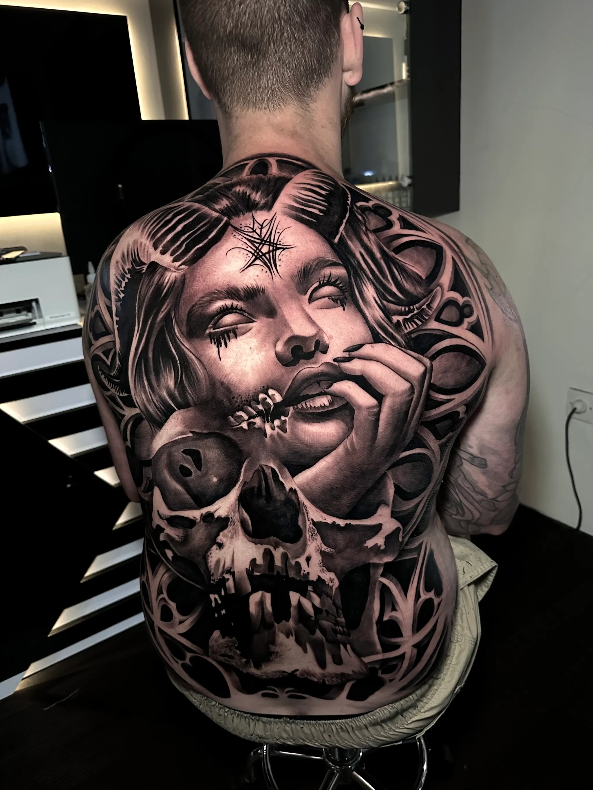 Known professionally as Kenjir, Eka is a talented tattoo artist from Ink Danger Studio, specialising in black and grey realism with a focus on precision, shading, and lifelike detail. His work captures emotion and depth, often combining realistic portraiture with clean linework to create pieces that feel timeless and powerful.