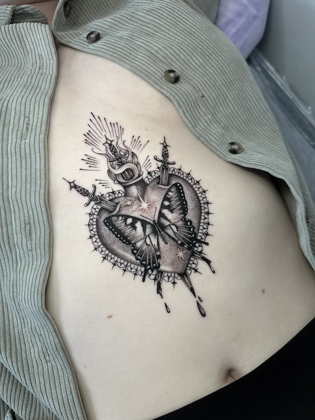 Specialising in illustrative realism and Japanese-inspired designs, Oaks creates tattoos that flow naturally with the body weaving together ornamental detail, natural forms, and smooth stipple shading to achieve harmony and precision.