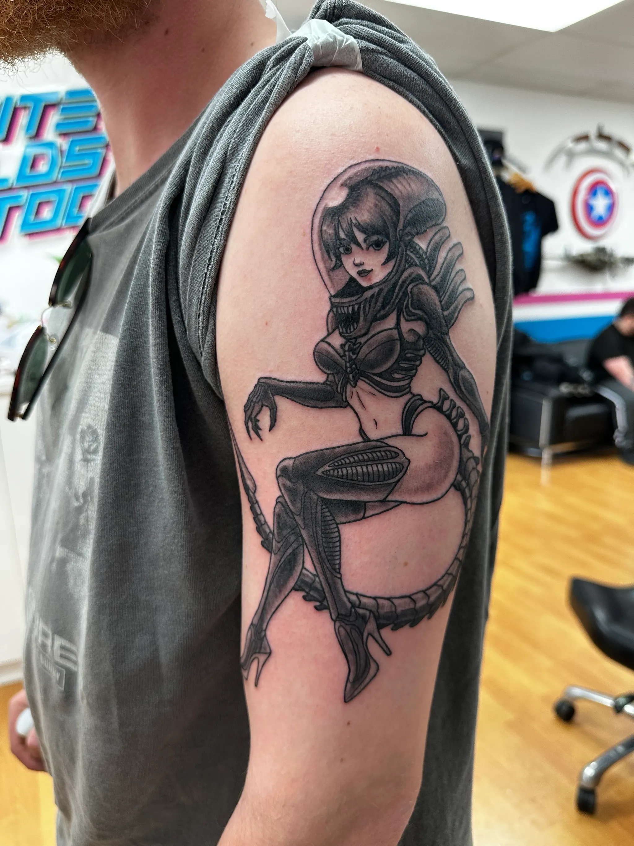 Owner of Infinite Worlds Tattoo in Adelaide, Paul is known for his colour portraits and pop culture realism, creating bold, dynamic tattoos inspired by the characters and stories that shaped us all. His work brings animation and illustration to life with vibrant energy and technical precision.