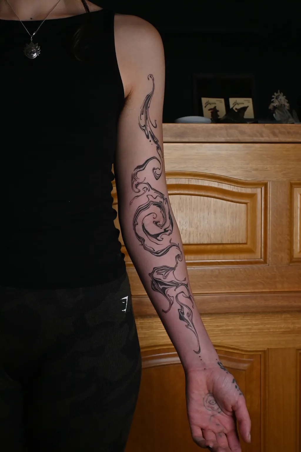Drawing inspiration from the natural world, Lou experiments with abstract ideas, organic textures, and surreal visual language. His work blends heavy blackwork, intricate dotwork, and flowing, otherworldly forms creating tattoos that feel spontaneous yet deeply intentional. Each piece balances structure with chaos, guided by composition, rhythm, and an intuitive sense of movement across the body.