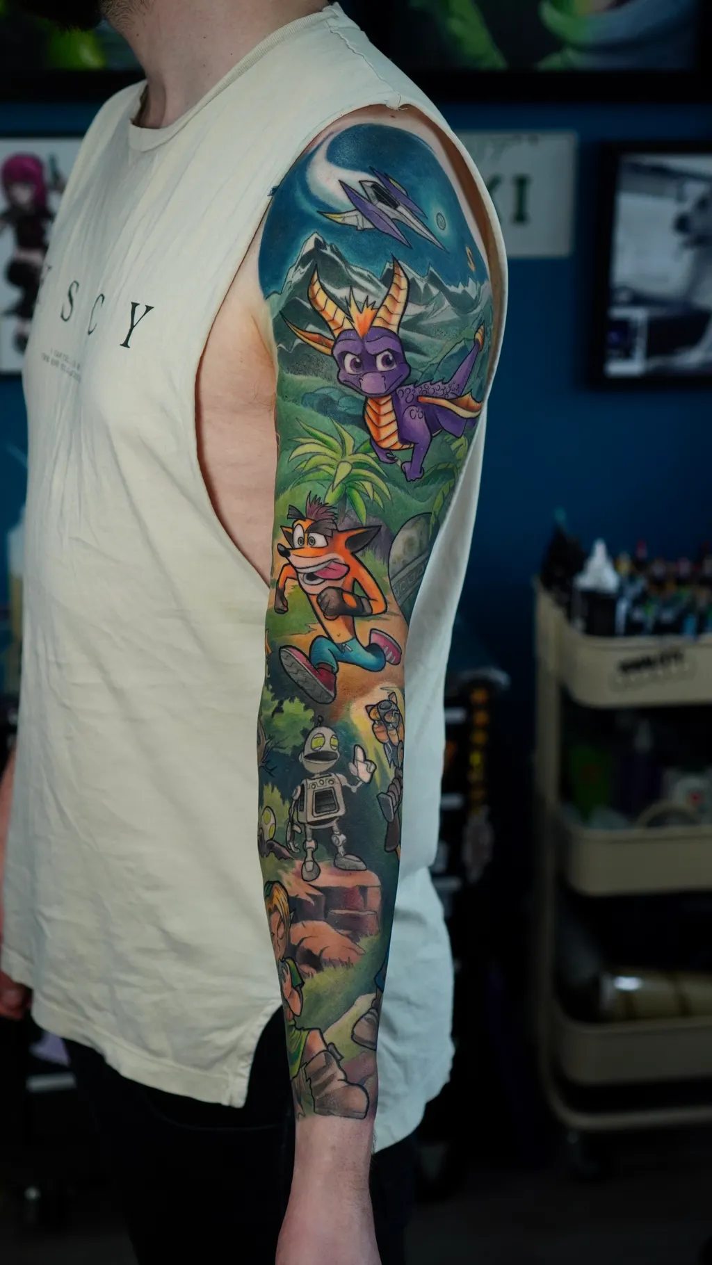 Specialising in anime and gaming-inspired tattoos, Suski’s work captures the emotion, energy, and nostalgia of beloved characters brought to life through stunning colour and black & grey designs