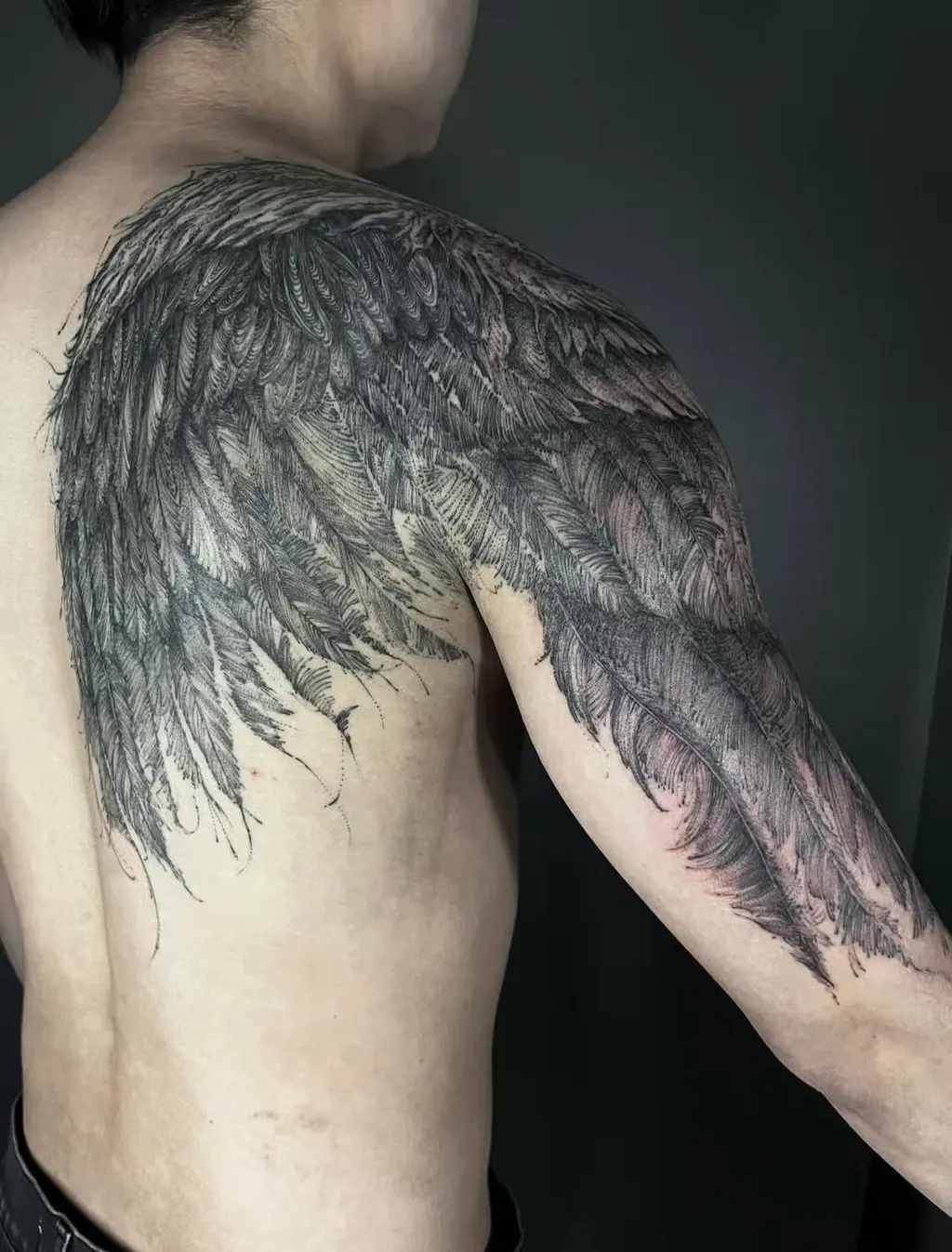 Specialising in fine line black & grey, Bing’s work is defined by its elegance, control, and meticulous detail. His designs often feature subtle shading, graceful linework, and a refined sense of balance creating tattoos that look effortless yet carry an incredible level of craftsmanship.