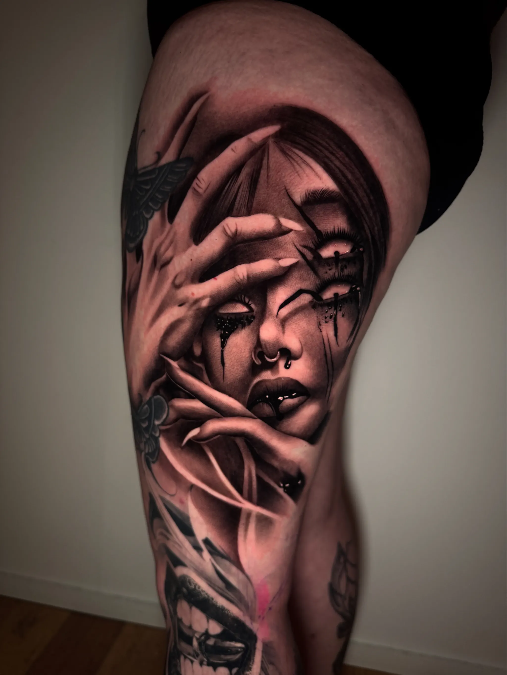 Based in Victoria, Zoe, the artist behind TattsByZo, brings a dark and cinematic edge to black & grey realism. Her tattoos explore the haunting side of art combining smooth gradients, high contrast, and striking depth to create imagery that feels alive, eerie, and unforgettable.