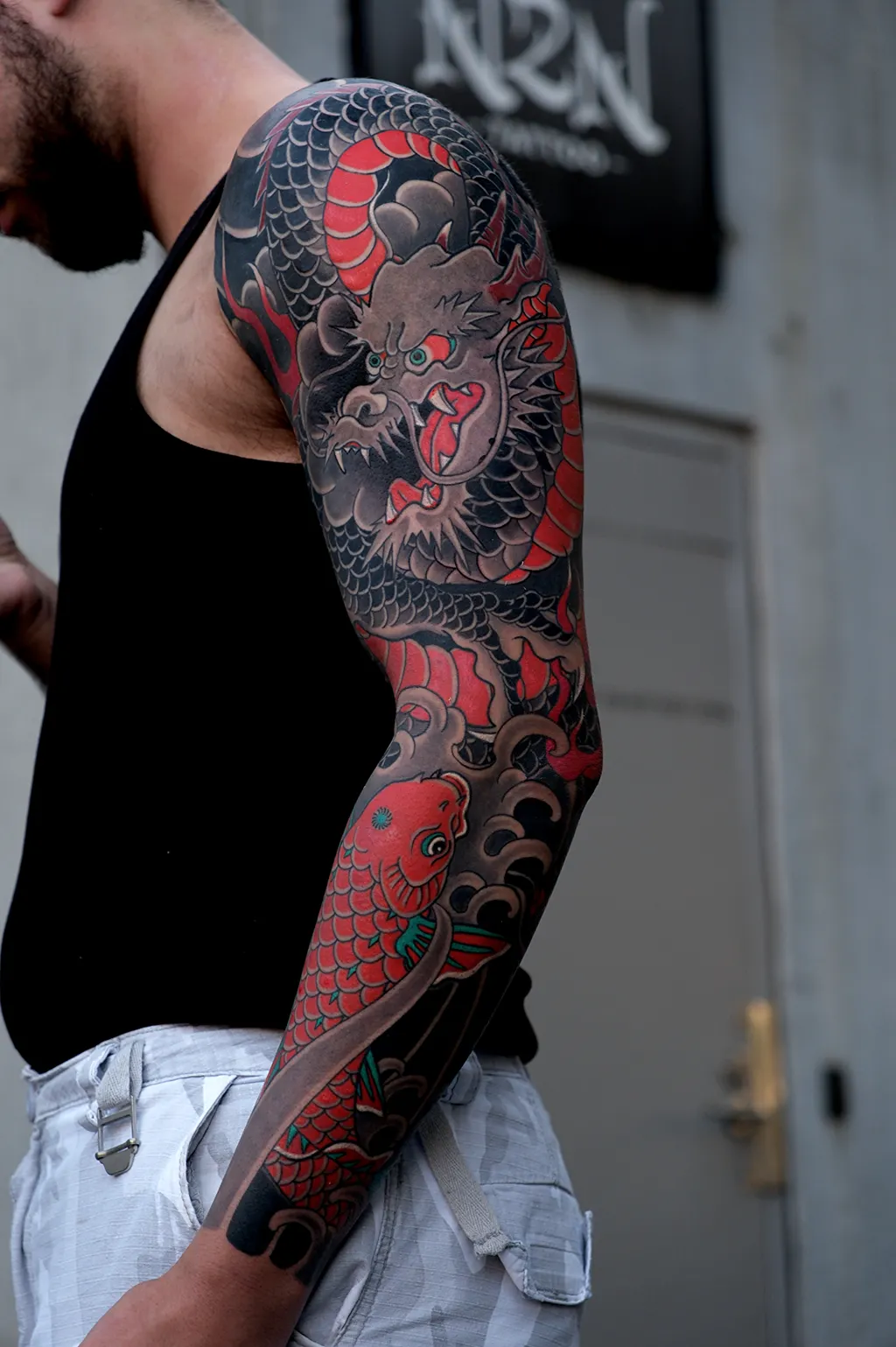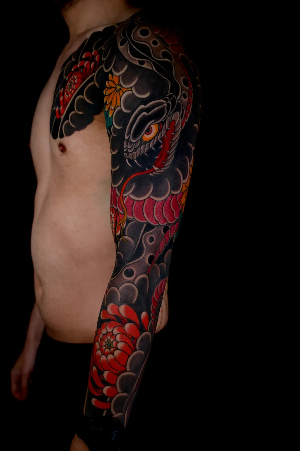 Specialising in large-scale Japanese and Oriental designs, Trang’s work commands attention blending powerful symbolism, flowing composition, and expert use of colour and contrast. Whether full-body, sleeve, or back piece, every tattoo reflects precision, patience, and deep respect for the art form’s tradition.