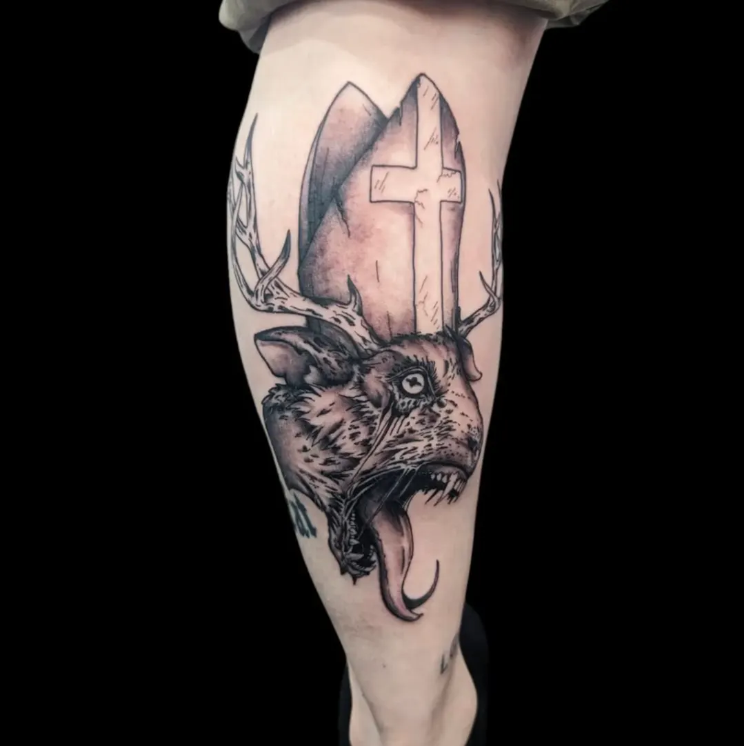 As one half of a talented husband-and-wife duo based in Penguin, Tasmania, Ben Wallace specialises in fine stipple work and black & grey tattooing that balances precision with emotion. His art carries a timeless simplicity, intricate, detailed, and deeply personal.