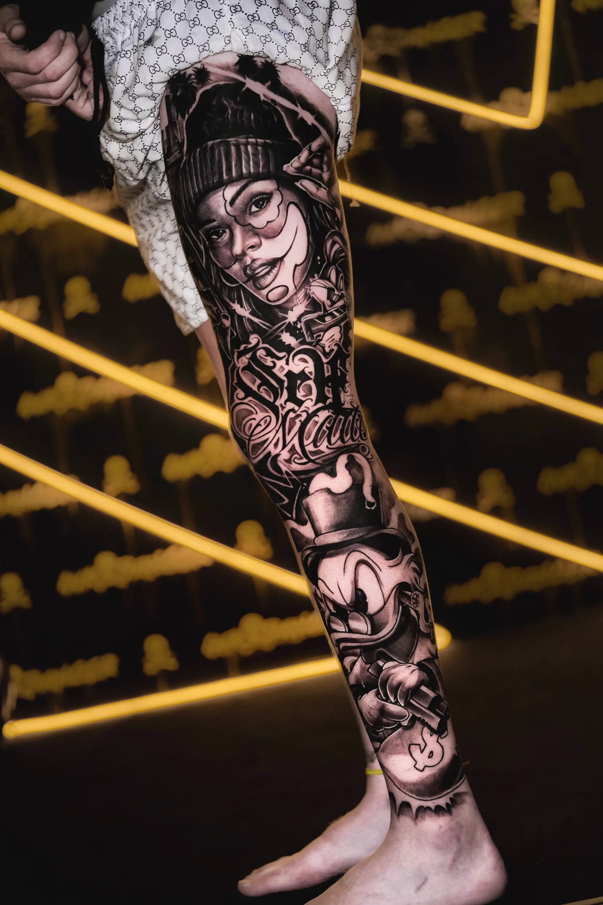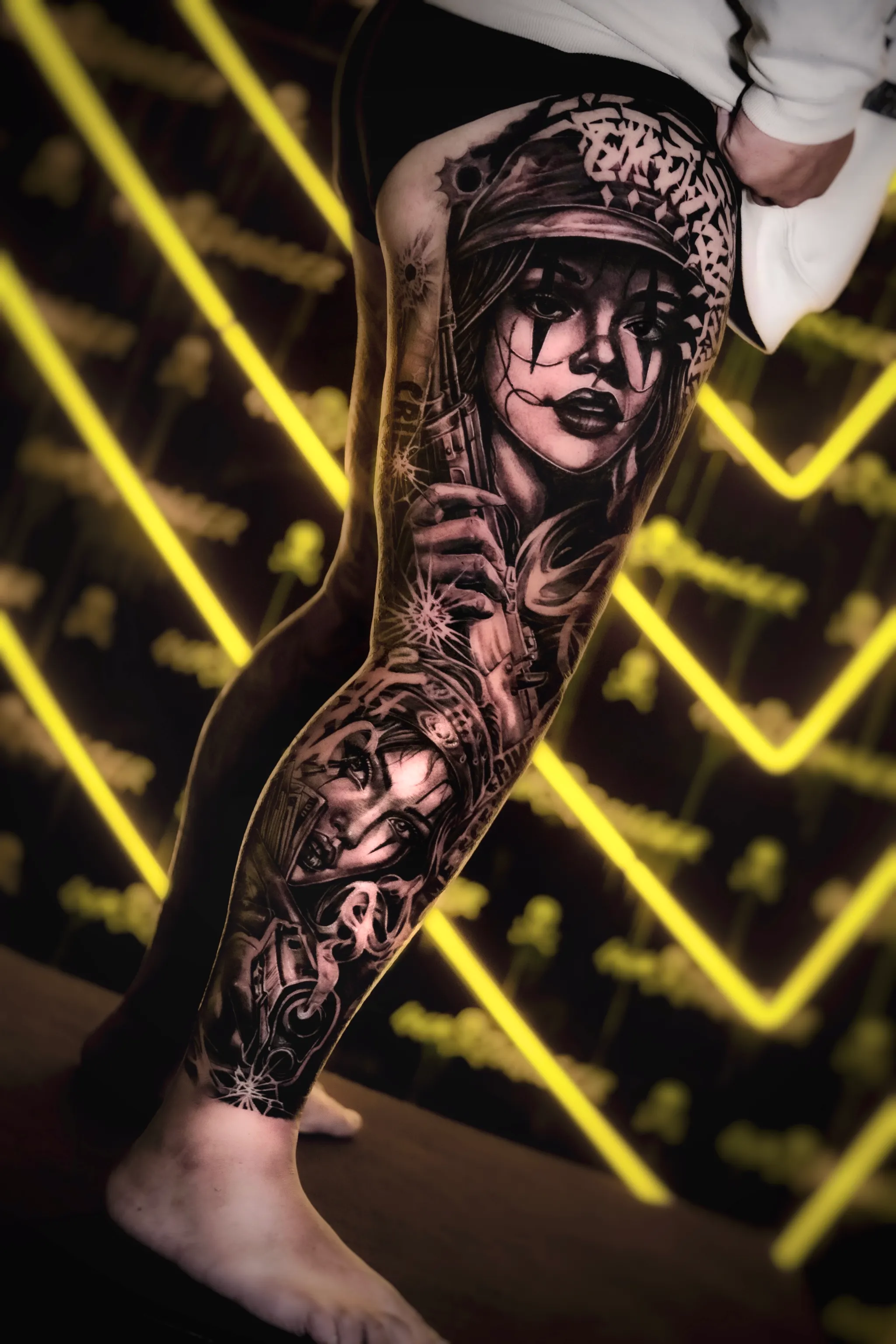 With each tattoo, Weda combines technique and emotion, showcasing the timeless beauty of black and grey artistry.