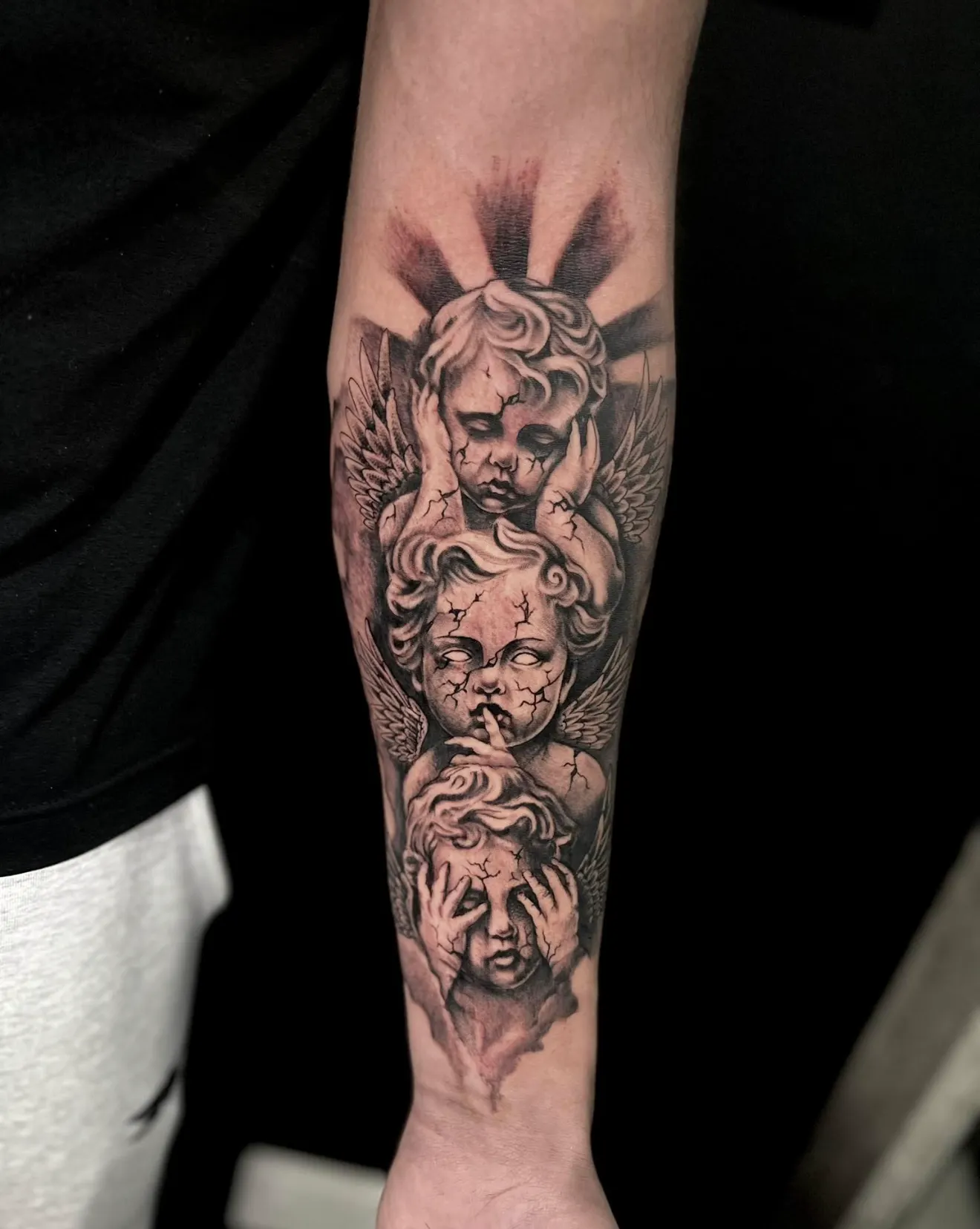 His approach goes beyond technique each tattoo reflects a story of transformation, turning old work into renewed art through refined contrast and smooth shading.