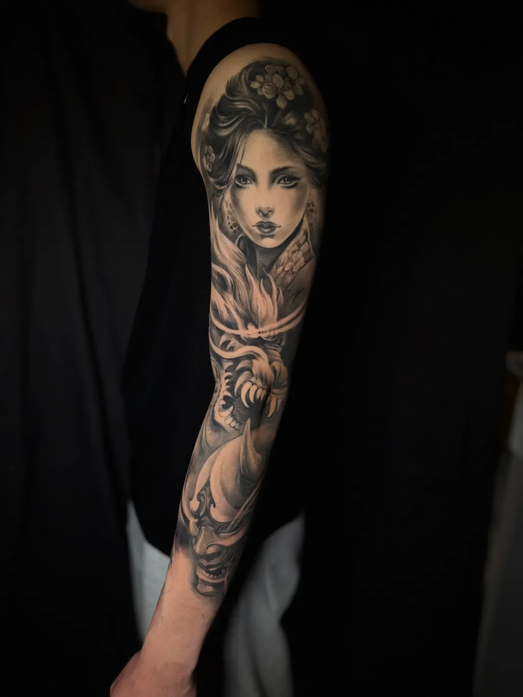 With 15 years behind the needle, Winnie specialises in black & grey realism and oriental-inspired tattooing, blending technical precision with cultural depth. Her realism work showcases smooth gradients, thoughtful detail, and an instinct for capturing emotion within every piece. Her oriental-inspired designs draw on classic motifs, strong composition, and flowing structures that move naturally with the body.