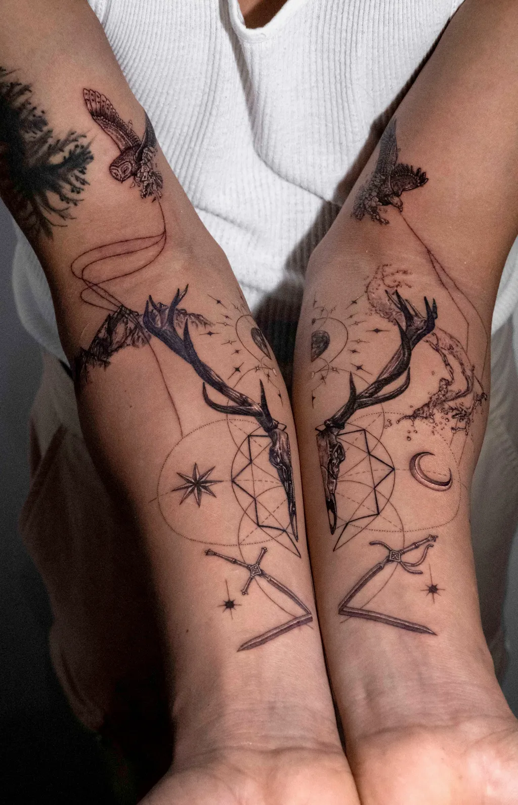 Every design showcases control, subtle detail, and a strong sense of composition, making his tattoos both visually striking and emotionally engaging. Whether grounded in realism or conceptual storytelling, his work demonstrates a mastery of tone, texture, and fine detail.